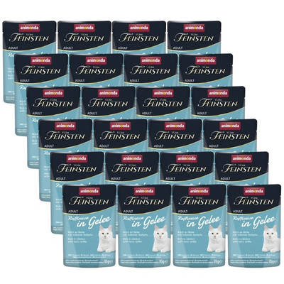 Vom Feinsten Raffinessein een rijke gelei met kip en andere vleessoorten is een gezonde, uitgebalanceerde voeding voor veeleisende katten. De heerlijke, malse stukjes in combinatie met de zachte gelei zorgen elke keer weer voor een bijzondere traktatie en voorzien katten van alle noodzakelijke voedingsstoffen die ze nodig hebben.